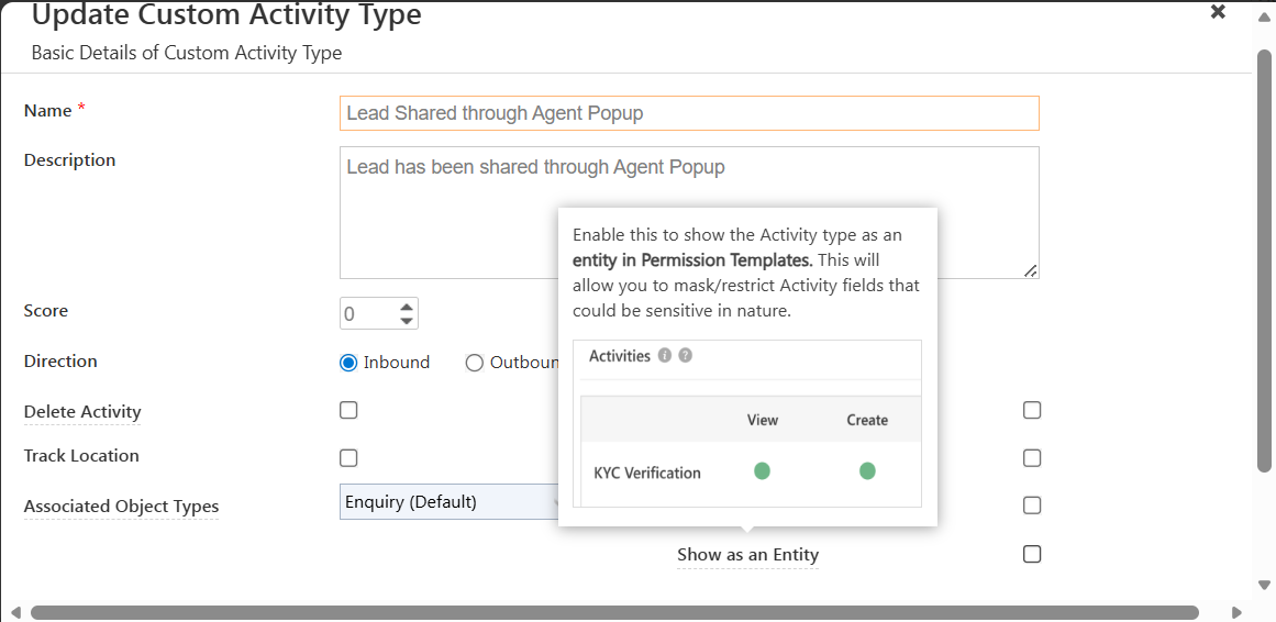 Then we want to enable this setting from the backend so we get the option to mark the activity as Entity and then those activities will be opened to add restrictions on their fields.
