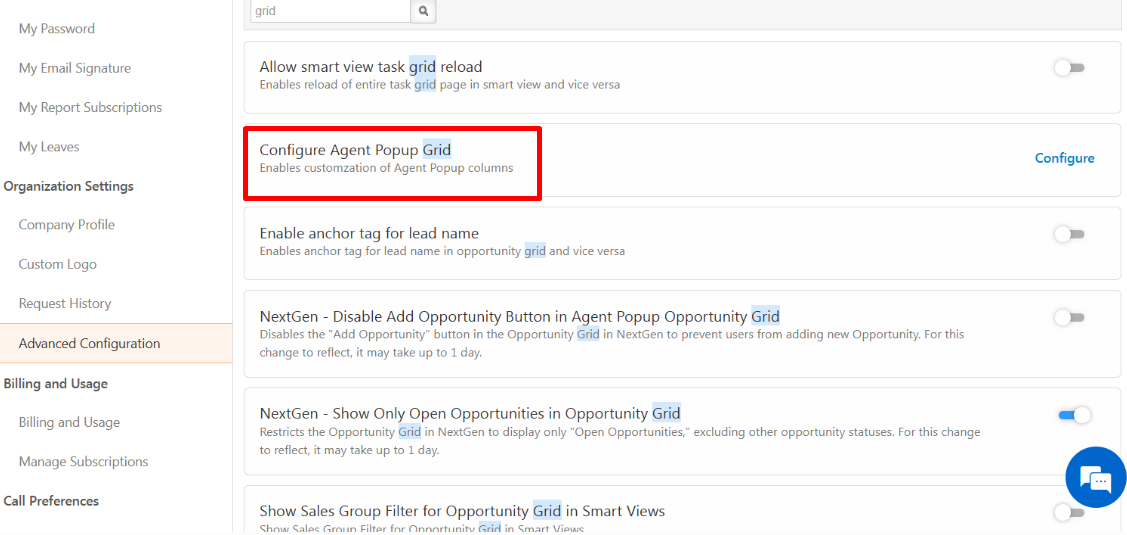 Enable “Configure Agent Pop-Up Grid”: Within this configuration, ensure that the Opportunity option is enabled.