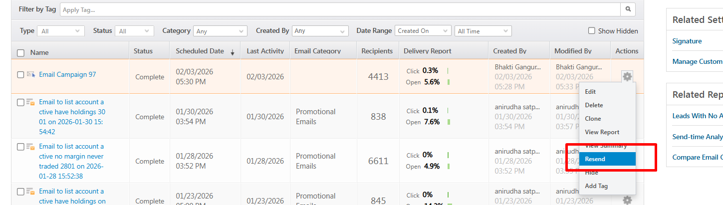 Problem Statement: The resend option in email campaign will not resend the email campaign to all the users again like a follow up.