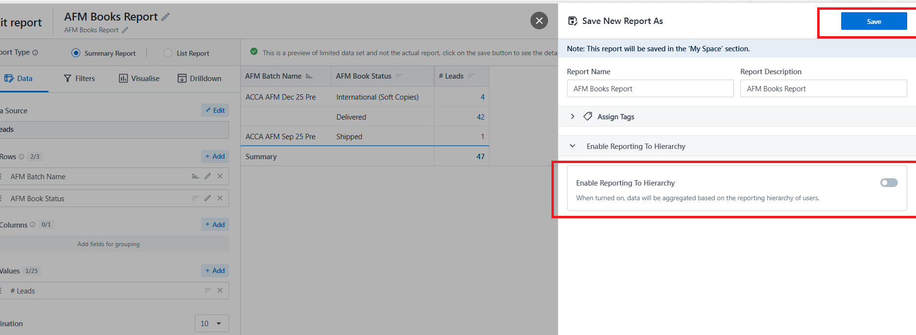 Alternatively, continue using the hierarchy setting if the requirement is to view data only for reporting users.