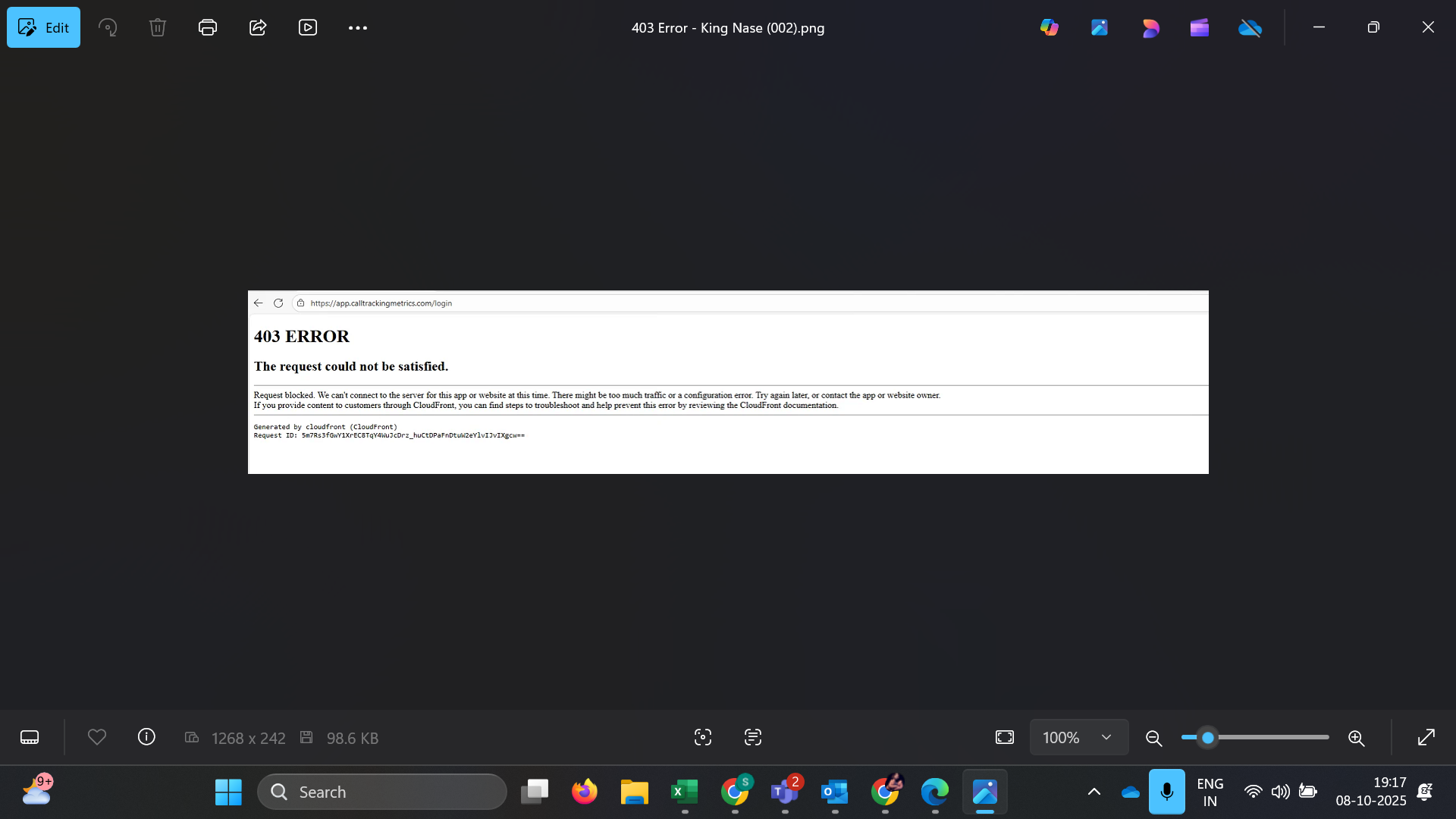 This error typically occurs when CloudFront blocks access due to network restrictions or security configurations. If the issue persists, users should contact their IT team or reach out to CTM Support for further assistance.