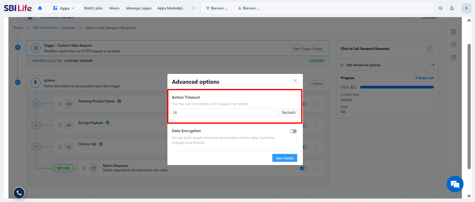 Increase the Action Timeout limit